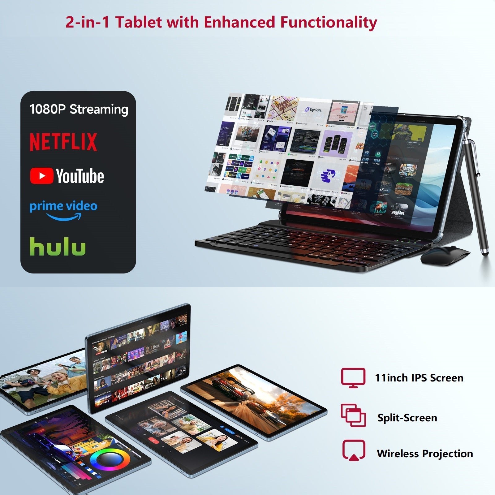 - This 4G cellular tablet includes all essential accessories, saving you time and money. The keyboard and mouse let you seamlessly transform it into laptop, reading, or streaming mode—enabling efficient work and study.The package includes: 11 inch tablet, keyboard, wireless mouse, stylus pen, protective case, screen protector. This Tablet Bundle is the daily gift for any occasion: Valentine's Day, Easter, Mother's Day, Father's Day, Labor Day, Christmas, New Year – Perfect for adults, teens, and older adults alike.