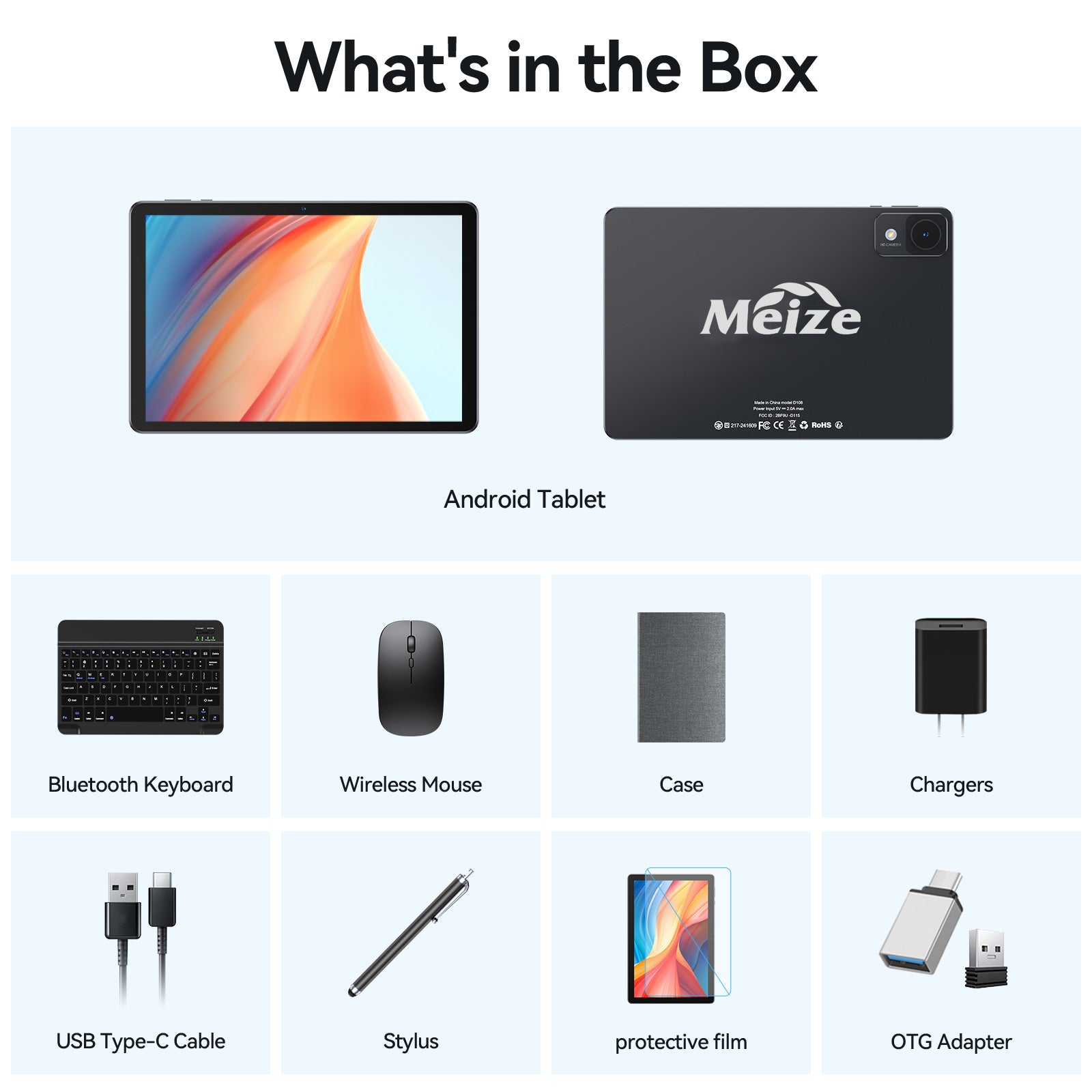 Tablet | Keyboard Case | Screen Protector | Touch Pen | Type-C Cable | Charger | SD Card Tray Eject Pin|Manual