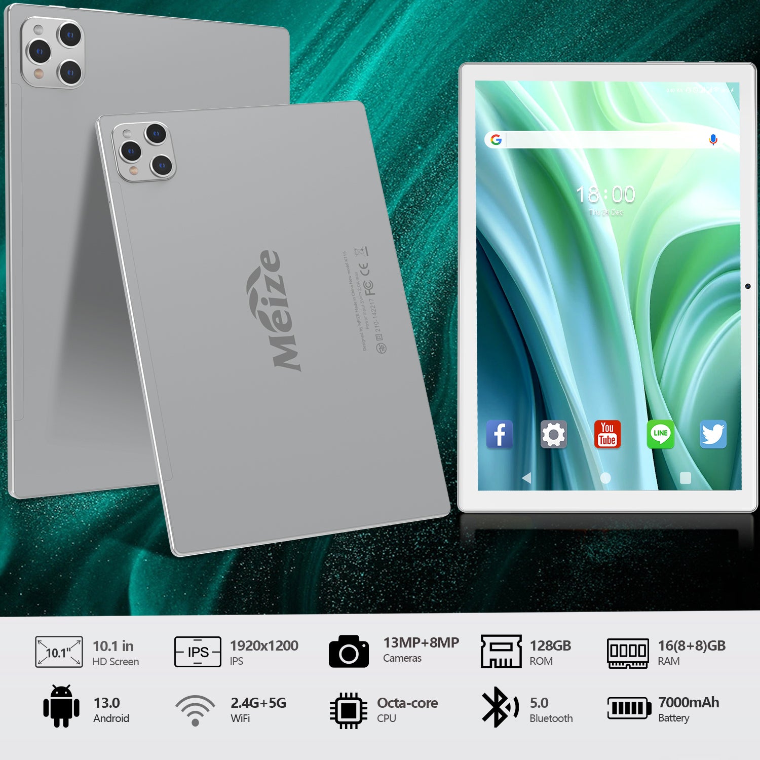 【Android 13.0 System,Octa-Core Processor 2.0Ghz Tablet】MEIZE 10.1inch Tablet is powered by Octa-Core Processor up to 2.0GHz. 10.1 inch Tablet screen size with 1920x1200 resolution ,latest Android 13 tablet handles multiple tasks, work, study, play and more quickly and efficiently,perfect for home entertainment and office.