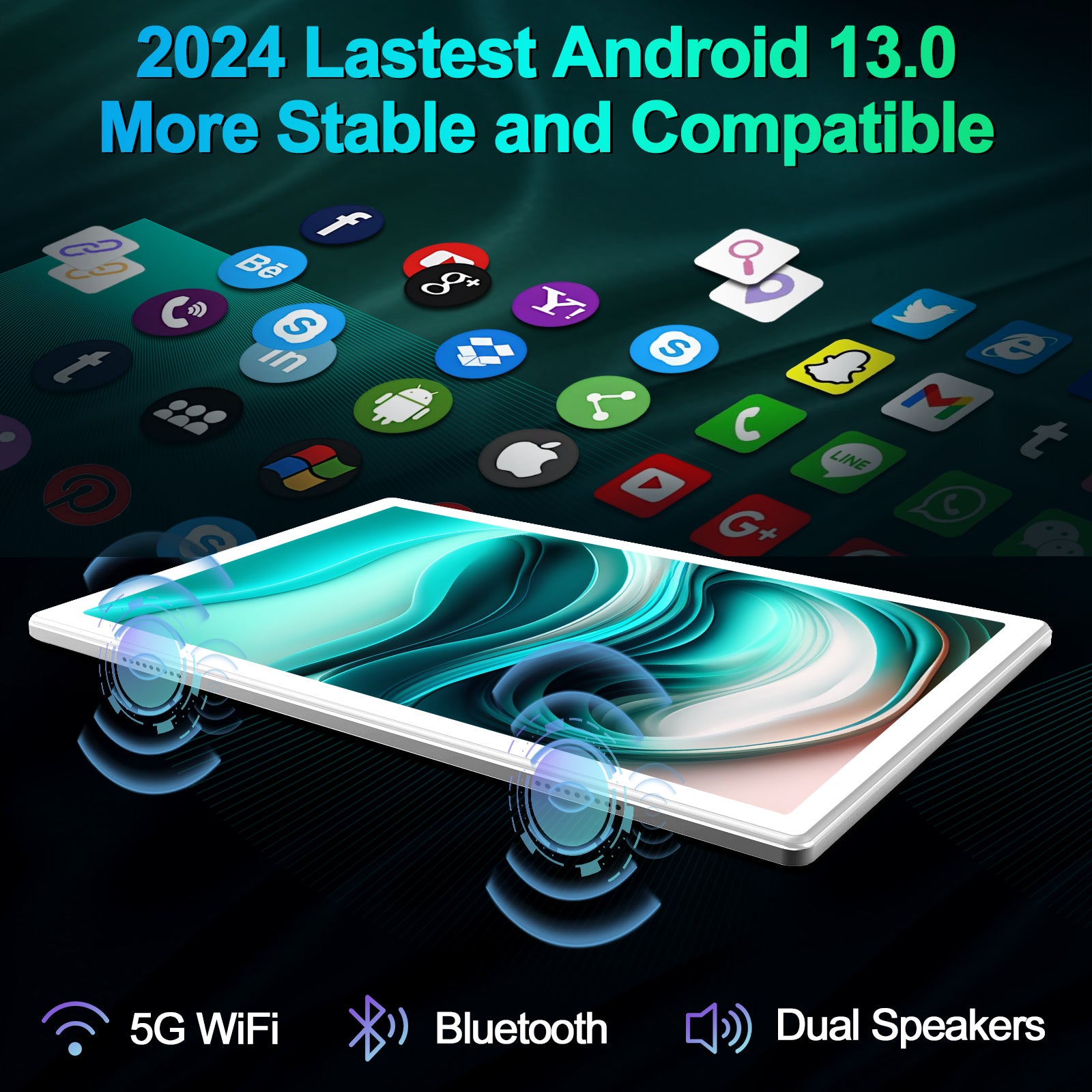 【Dual Cameras and Dual Spearkers Tablet】10inch tablet equiped With front 8 MP & Rear 13 MP dual cameras.1920 x 1200 resolution display offer a truly immersive viewing experience for work and plays. Dual speakers bringing more powerful and balanced sound effect.The best choice for daily use/online meeting/video.