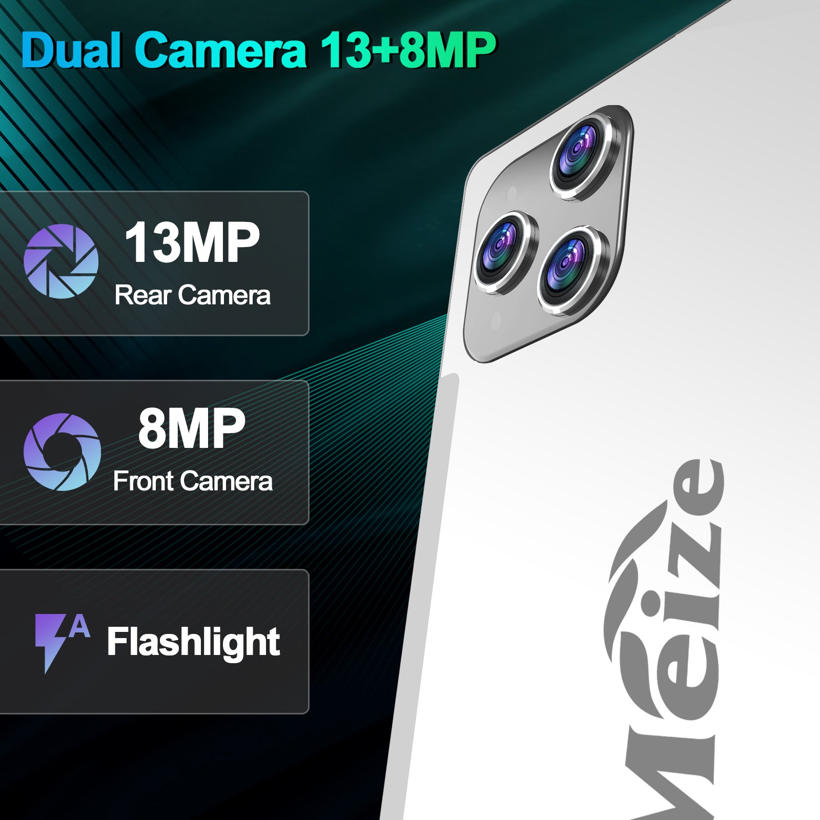 Dual Camera:13MP rear camera with 8 MP front camera